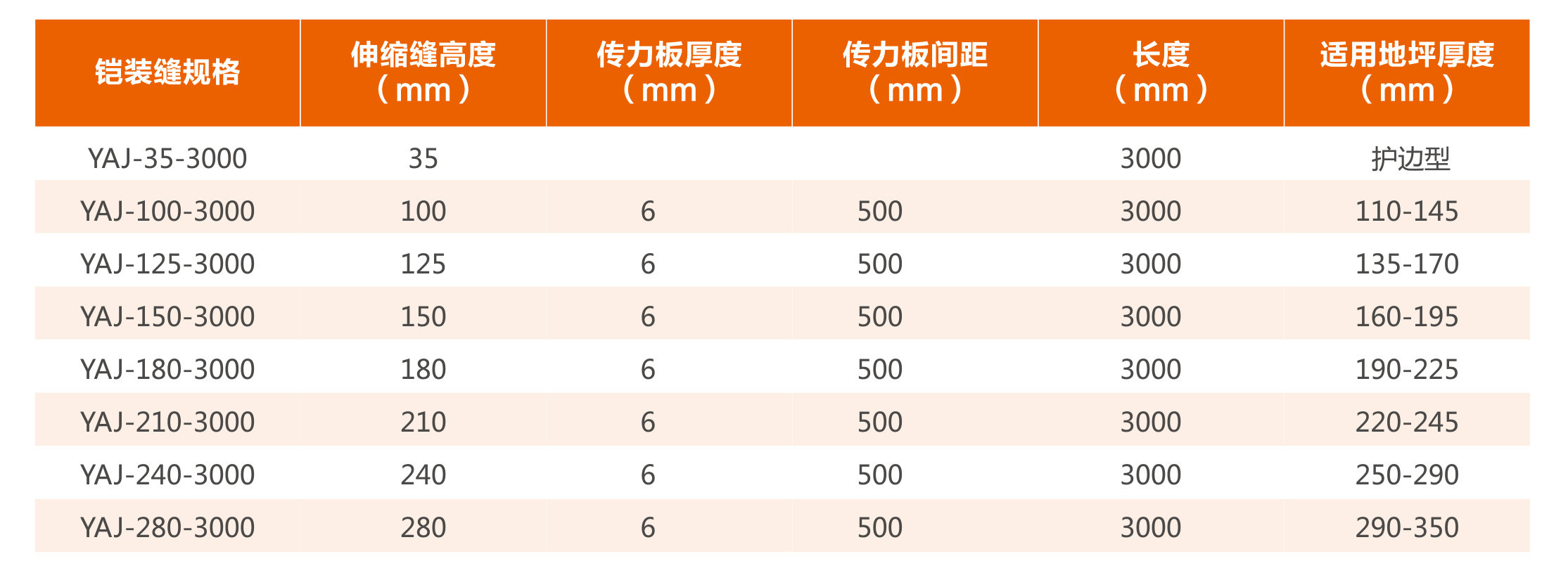 YAJ型地坪伸縮縫連接件的主要類型(材質(zhì)和標準):